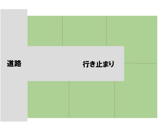 「袋小路(ふくろこうじ)」とは、道路や通路が一方通行の行き止まりになっている状態を指します。不動産では、この行き止まりの道に面した土地や建物のことを言います。