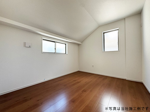 対策: エルハウジングの分譲住宅では、あらかじめ必要な構造強度や採光を確保した上で、勾配天井を採用しています。