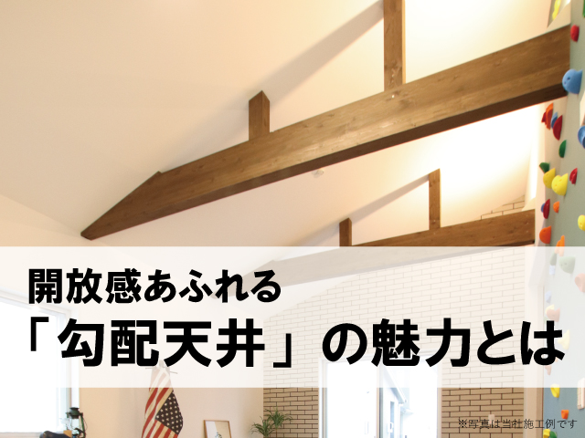 勾配天井とは、最上階の天井を一般的なフラットな天井にせず、屋根の傾斜(勾配)に沿って斜めに仕上げた天井のことです。