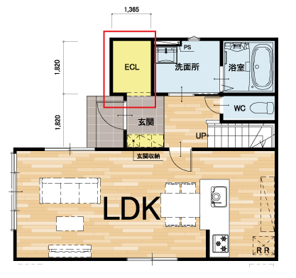 エルハウジングの分譲住宅では、標準のシューズボックスに加えて、さらに収納を充実させた「エントランスクローゼット(玄関土間収納)」を設置した間取りを多くご提案しています。